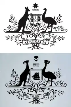 In September 2017, TJM received an e-mail from the Australian National Symbols Officer requesting that the use of the satirical logo no longer be used as they had received complaints from the members of the public about the logo.[11] Five days later a Bill was proposed to Australian parliament to amend the Criminal Code Act 1995, with the intention of introducing "new offences for a person recklessly or intentionally representing themselves to be, or to be acting on behalf of, or with the authority of, a Commonwealth entity or service".[12]