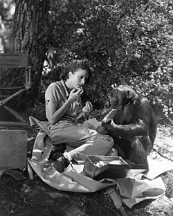 The natives capture everyone from the camp. They prepare to execute Ulah by lowering her into a pit. Melan, a traitor, digs the pit. Limau dies trying to save her; the natives throw a volley of spears at him. Ulah weeps while watching Limau die. Karen Neg escapes first and tries to take on all of the locals with a broadsword, but pays for it with his life; Melan impales him from behind. Bogo, the chimpanzee, sees what happens, and rallies a horde of monkeys. Powell escapes, takes Ava's pistol from her pocket, and shoots Melan right before he can kill Ulah. As Powell unties Ullah, the hoard of monkeys arrives, and stampedes, destroying all of the natives' homes. (This mirrors the catastrophe in the movie's intro, when a herd of Indian elephants stampedes and destroys the village where Ulah spent her pre-orphan childhood.) Powell shoots one of the locals as the latter tries to kill Bogo. (This mirrors the moment, earlier in the movie, when Ulah's and Limau's parents killed each other.)