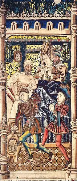 It was commissioned by George of Saluzzo on his appointment as Bishop of Lausanne in 1440. Saluzzo wanted a tapestry depicting scenes of justice for the courtroom above his chapter house. He apparently knew that van der Weyden had painted these scenes and ordered them copied. It was not an exact copy, but the earliest surviving work which depicts the scenes.[7]