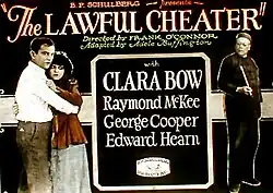 The Lawful Cheater, sometimes referred to as Lawful Cheaters, is a 1925 American silent crime drama film written by Frank O'Connor and Adele Buffington. The film was directed by O'Connor for B.P. Schulberg Productions, and starred Clara Bow, David Kirby, and Raymond McKee.[1][2] After its 1925 U.S. theatrical release, the film was banned by the British Board of Film Censors.[3]