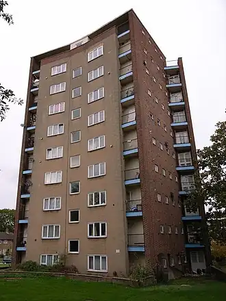 The building is noted as being the first residential tower block in the UK,[1][2] as well as being the location of its first pedestrian precinct.[3] The structure was completed in 1951 to coincide with the Festival of Britain.[4]
