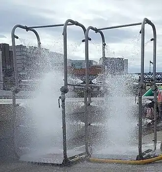 Dublin Fire Brigade provide decontamination showers at the finish.[16] There have been concerns about the possibility of contracting Weil's disease in the Liffey as well as other safety concerns relating to pollution.[17][18] Studies have found that E. coli levels in the Liffey are higher than EPA standard levels.[19]