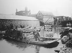 A new industrial quarter to the west of Oxford arose around the high traffic of the Oxford Canal. Coal, transported along the canal directly to modern day Park End Street, resulted in the area becoming a hotbed of industry: breweries, bakeries, jam factories and more sprung up in what was undeveloped land. Though this particular public house benefitted from being adjacent to both a main canal artery and the Oxford Coal Wharf, it was far from being unique as the area dotted with taverns, all looking to attract the many factory and canal workers. In 1824, the pub is believed to have been called "Racers" and operated by a Mr C. Collier.[3] By 1830 it was in the proprietorship of one James Pacey and is recorded as "Navigation's End" – deriving its name from the stream then referred to as "Old Navigation". One may reasonably deduce James was an affluent individual – he bequeathed his family name to the adjoining "Pacey's Bridge".[4]