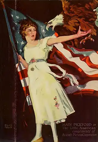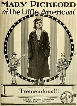 The Little American is a 1917 American silent romantic war drama film directed by Cecil B. DeMille. The film stars Mary Pickford (who also served as producer) as an American woman who is in love with both a German soldier and a French soldier during World War I. Art direction for the film was done by Wilfred Buckland. John Hay Beith was technical advisor on the film, credited under his pen name, Ian Hay.[3]