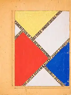 According to an ad which appeared in the New York Tribune on March 29, 1925, The Little Review Gallery was "Founded by artists in the interest of artists" and housed "Paintings—Sculptures—Constructions". During this period (March 10-April 11, 1925), the gallery was only open two times a week: from 2-6 P. M. on Tuesdays and Saturdays.[8] In May 1925, the New York Tribune ran the following review of the Little Review Gallery's exhibit featuring Dutch painter and architect Theo van Doesburg:[9]