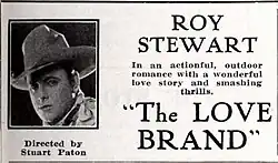 The Love Brand is a 1923 American silent Western film directed by Stuart Paton and written by Raymond L. Schrock and Adrian Johnson. The film stars Roy Stewart, Wilfrid North, Margaret Landis, Arthur Stuart Hull, Sidney De Gray, and Marie Wells. The film was released on August 13, 1923, by Universal Pictures.[1][2][3]