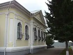 The Church is situated on the east side of the square parade ground in a fortress in the city center, near the Irtysh River. This building is an architectural monument of the late Siberian baroque. The movement of architectural forms, flexibility, richness of stucco give emphasis and put it among the best architectural monuments of Omsk of the 18th century. The project was completed in the military office of the Siberian Corps, commanded by Lieutenant-General I.I. Springer. This church represents a baroque rectangular building with a large semi-circular altar. The main facade has centrally symmetric composition: in the middle there is a risalit, cutting through three arched windows with responders between them and completing by the gable, side parts have two arched windows, rounded corners and pilaster side. The entry of the church was on the south side. Initially it had a doorway with columns, and later the church kept the high porch with rampart of ornately shaped trellis-work and canopy with elegant hammered metal consoles. Until the late 19th century, over the building there was the baroque octagonal tower with a dome. Later the Gothic tower was built in 1906—1908 over it. These changes in the appearance of the building connected with the peculiarities of the national identity of the Lutherans. Therefore, the replacement of the international Baroque style in the forms of towers for the Gothic one was made with an intention to give the church more 'German' appearance. But it demounted in 1970. Decorative elements: The walls are smooth with pilasters, cornice is anfractuous. Semicircular windows are decorated with architraves. Interior is not preserved.[1]
