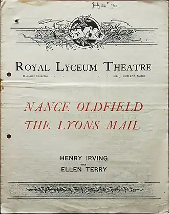 The Lyons Mail is an 1877 drama by Charles Reade based on his play The Courier of Lyons (1854). The new version was written for Henry Irving for performance at the Lyceum Theatre.[1]