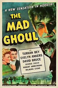 The Mad Ghoul is a 1943 American horror film directed by James Hogan and starring Turhan Bey, Evelyn Ankers, and David Bruce, and featuring George Zucco, Robert Armstrong, and Milburn Stone. The film is about the scientist Dr. Alfred Morris and his assistant Ted Allison. Morris, who is obsessed with an ancient Mayan life-preserving process to the point of madness, has fallen in love with Allison's girlfriend, the concert singer Isabel Lewis. Morris decides to use Allison for his eternal-life experiments, transforming him into a zombie who slowly recalls his past life, but is unaware of his undead status.