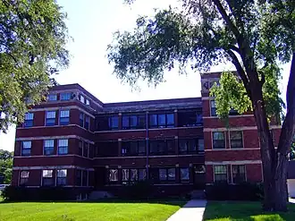 The Maine is a historic building located in Des Moines, Iowa, United States. This three-story, brick structure was completed in 1913. It features 18 units, an "H" plan, a series of ribbon windows, stone lintels and decorative stone trimming. At the rear of the property is a two-story brick automobile garage that shares the historic designation with the apartment building. The date of its construction is uncertain.[2] The building is located on Sixth Avenue, which by the turn of the 20th century had become a major route utilized by vehicular traffic and streetcar lines. Its proximity to this transportation corridor illustrates the emergence of higher and denser residential use in this area of Des Moines.[2] The apartment building and garage were listed together on the National Register of Historic Places in 1996.[1] It is currently income-restricted housing.