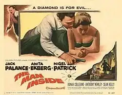 The Man Inside is a 1958 British crime adventure film directed by John Gilling and starring Jack Palance, Anita Ekberg, Nigel Patrick, Anthony Newley and Bonar Colleano.[2] It was produced by Irving Allen and Albert R. Broccoli for Warwick Film Productions. The screenplay by David Shaw was based on the 1954 novel of the same name by M. E. Chaber. It was Bonar Colleano's final film role.[3]