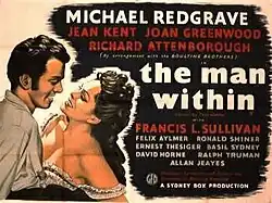 The Man Within is a 1947 British, Technicolor, adventure, crime, drama film, directed by Bernard Knowles and starring Ronald Shiner as Cockney Harry, Michael Redgrave, Jean Kent, Joan Greenwood and Richard Attenborough.[3] In the United States, it was released in a slightly shorter version, retitled The Smugglers.[4] It was produced by Triton Films and Production Film Service. The film was also presented by J. Arthur Rank and the Rank Organisation. The film was adapted from the 1929 novel The Man Within by Graham Greene.