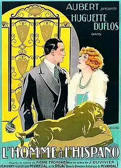The Man with the Hispano (French: L'homme à l'Hispano) is a 1926 French silent drama film directed by Julien Duvivier and starring Huguette Duflos, Georges Galli and Acho Chakatouny.[1] The title refers to a luxury Hispano-Suiza car. It was based on a novel of the same title by Pierre Frondaie and was remade as a sound film The Man with the Hispano in 1933.