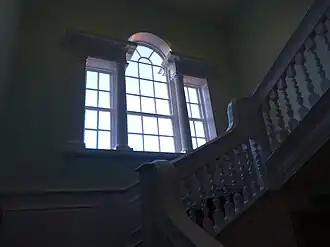 Above the main staircase and in the rear wall of the house is an imposing Palladian-style Venetian window which was fitted sometime after the building of the house. It is of the style of the renowned architect James Paine and therefore there is a possibility that it could have been installed in around 1756 when James Paine or his practice was commissioned by John Burdon who owned Hardwick Estate at the time to create follies and buildings in the pleasure grounds of his estate. John Burdon had purchased Robert Wright's mansion house following years of title dispute which was settled in the High Court of Chancery in 1756. An almost identical window is in the dining room of nearby Hatfield College in Durham.