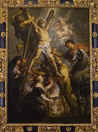 The work was a commission from Jan van Vucht from Flanders living in Madrid. He modelled its composition on a painting of the same subject which his teacher Otto van Veen had painted for the high altar of the church dedicated to Saint Andrew in Antwerp. A drawing after Rubens' painting with a few variations survives in the British Museum in London.[1]
