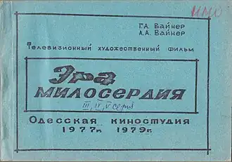 The Vayner brothers' script, approved by the Odessa Film Studio in June 1977 and then sent to Soviet Central Television for review, was more of a literary than a dramatic work. As Galina Lazareva, editor of the Odessa Film Studio, recalled, its volume and plot lines did not fit into the parameters of film production. The comments and recommendations received after a meeting on The Era of Mercy in Odessa and Moscow were taken into account by Stanislav Govorukhin when preparing the director's script,[13] a technical document with an exact indication of the necessary resources and materials for filming. According to the director's script, 33 leading actors (from Sharapov to Larisa Gruzdeva's sister, Nadya), 31 supporting actors, and more than eighty people appearing in episodes were to be involved in the film. Govorukhin calculated how much film would be needed for filming on location, in a studio, and on interior sites (for example, in the Bolshoi Theater, a billiard room, and a radio committee). The director also prepared a full storyboard for the film.[14]