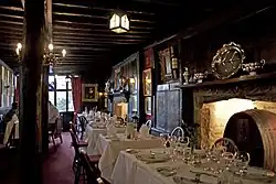 In the 1420s, the inn was rebuilt but retained its cellars.[5] It underwent further renovation in the 16th century, much of which remains today.[2][8] Catholic priests who had fled from Continental Europe escaping from the Reformation during 1530 stayed in the inn, which is testified by j.h.s. (Jesus Hominum Salvator) inscribed in the oak-panelled "Syn's Lounge". Between 1550 and 1570, the Town Corporation organised many functions such as the "Sessions Dinner", the "Gentlemens Freeman's Dinner", "Mayoring Day" and the "Herring Feast".[2] Queen Elizabeth I was also a guest at the inn around this time.[5]