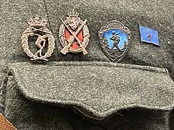 The marching badge was previously an annual strength test at the Norwegian Military Academy in Oslo, and part of the basic soldier's education for Norwegian Conscripts. As of 2018, it has been voluntary.[5] The Military Marching Badge is no longer authorized for wear on uniforms of the Norwegian Armed Forces, and has since been replaced by the Norwegian Armed Forces Medal for Military Sports, with differing criteria.[6]