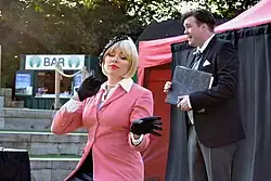 The musical was first produced by Quirk Theatre and Film during the 1998 Brighton Fringe Festival, where it was staged at the Pavilion Theatre.[3] The cast comprised Nicholas Quirke (the Minister), Sam Hewitt (Cedric Hobson), Joanna Neary (Francoise Courvoisier), David Mounfield (Babbington) and Claire Raftery (Dr Wischwinge/Radio Announcer). The live score was performed by the Janski String Quartet under the direction of Jason Pegg. Clea Smith and Briony McIlroy appeared as dancing biscuits. In her review in The Stage, Jan Whitehead wrote, 'What an absolute ripping yarn - a top hole musical comedy without a sniff of Lloyd Webber anywhere....This fringe show played to full houses at the Pavilion and was a festival gem.'[4]