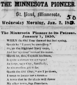 ![]() The opening lines of the poem as printed in the January 2, 1850, edition of the Minnesota Pioneer | |