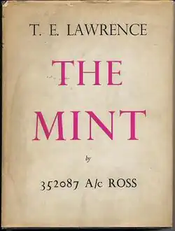 The Mint is a book written by T. E. Lawrence[a] and published posthumously in 1955. It describes his time in the Royal Air Force, working, despite having held senior rank in the army (colonel), as an ordinary aircraftman, under an assumed name, 352087 Ross.