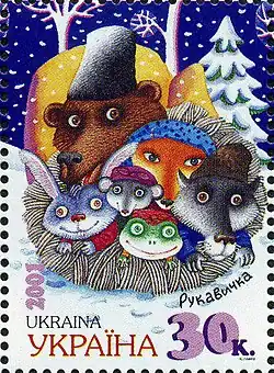 ![]() Characters from The Mitten featured on a stamp of the Ukrainian national postal service, Ukrposhta, 2001 | |