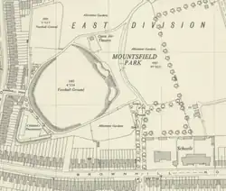 The Mount was a football stadium in Catford, located in the south west corner of what later became Mountsfield Park.[1] Football was played there as early as the mid 19th century. Catford Southend F.C. (founded c1900) used this as their home ground and eventually developed the land into a proper stadium with terracing, and it also hosted Charlton Athletic games in the 1923–1924 season. Unusually, the stadium was elevated above its surroundings, which may have given rise to its name (as well as it being a truncation of 'Mountsfield').