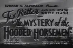 The Mystery of the Hooded Horsemen is a 1937 American Western film directed by Ray Taylor. It was singing cowboy Tex Ritter's eighth film for Grand National Pictures.[1] While the film had an original copyright notice, its copyright was not renewed, so it has entered the public domain.[2]