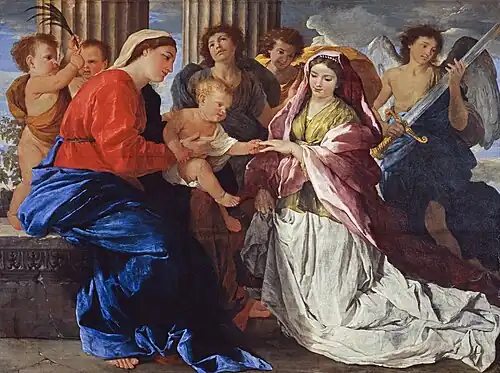 The Mystic Marriage of Saint Catherine is an oil on panel painting by Nicolas Poussin, dated to about 1628–1629, which depicts the mystical marriage of Saint Catherine to Christ. The picture is now in the Scottish National Gallery, Edinburgh.[1]
