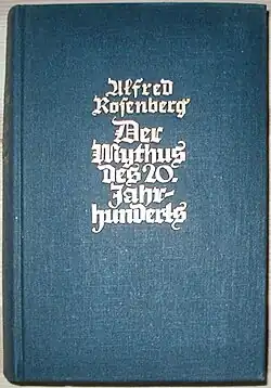 The Myth of the Twentieth Century (German: Der Mythus des zwanzigsten Jahrhunderts) is an influential, pseudo-scientific, pseudo-historical book by Alfred Rosenberg, a Nazi theorist[1] who was one of the principal ideologues of the National-Socialist Party and editor of the National-socialist paper Völkischer Beobachter. Rosenberg was later convicted for crimes against humanity at the Nuremberg trials and executed in 1946.