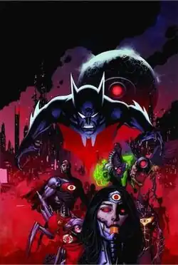 Thirty-five years into the future, Brother Eye has managed to transform the majority of superheroes into cyborg bugs. As the last remaining heroes launch one final attack on Brother Eye's power source, Bruce Wayne creates a time machine in an attempt to prevent Brother Eye's ascension and this future. Before Bruce is able to use the time machine, he gets ambushed by cyborg bugs, forcing Batman (Terry McGinnis) to travel through time instead. Arriving in the past, Terry realizes that he has arrived five years too late, with what he was trying to prevent already in play.[11] After Terry is attacked by the cyborg bug of Plastique, which he subsequently dismantles, he learns that Mister Terrific is working on the technology which will lead to Brother Eye's ascension. He poses as a homeless person and slums outside Terrifitech Tower.