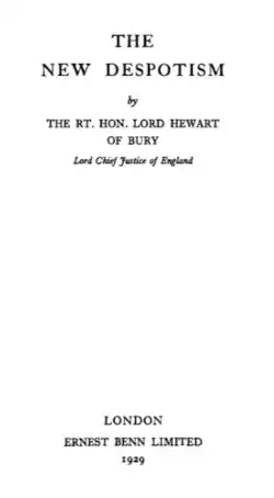 - ^ Lord Hewart (1929). The New Despotism. London: Ernest Benn Limited. p. 17 – via Internet Archive.