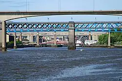 In 1969, the band found time to contribute to other projects. Emerson performed as a session player for Rod Stewart and the Faces,[29] while the whole group provided instrumental backing for the track "Hell's Angels" on Roy Harper's 1970 album Flat Baroque and Berserk.[30] Mid-year, tour promoter Michael Emmerson asked the Nice to write some music for the Newcastle upon Tyne Arts Festival. The result was the Five Bridges suite. The group premièred the piece on 10 October 1969 at Newcastle City Hall. A complete version with an orchestra was performed at the Fairfield Hall, Croydon on 17 October, which was recorded for the album of the same name. The title refers to the city's five bridges spanning the River Tyne, and Jackson's lyrics refer to his Newcastle childhood and the St James' Park football ground.[31]
