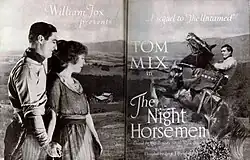 The Night Horsemen is a surviving 1921 American silent Western film directed by Lynn Reynolds and starring Tom Mix. It was produced by William Fox and released by Fox Film Corporation.[1] It was advertised as a sequel to the film The Untamed (1920), but the only actor reprising their role was Mix.