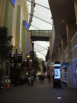 The Entertainment Avenue is a wide pedestrian avenue within The O2, with artificial palm trees and other decorations, built around the circular arena building which takes up the centre of the dome structure. The entertainment avenue has buildings on either side, which are leased to tenants who run bars and restaurants, and resembles a shopping centre.