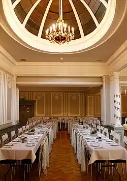 The Old Bell Hotel has had many previous owners over the years, some of whom have kept the hotel in their family for decades, whereas others have owned it for just days.[2] One of the longest owners was the Campion dynasty, who owned the building from July 1775 to 1863. Following the Campions' reign, the building was taken over by James Francis King, a well-known local Derby hotelier. King's reign at the Bell started in 1865 with a complimentary dinner, held in the assembly room of the Bell in front of 120 guests. The Mayor called King "a king of caterers" following the meal.[2]