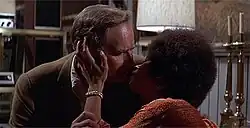 Whoopi Goldberg (mistakenly) remarked that the kiss between the characters played by Charlton Heston and Rosalind Cash was one of the first interracial kisses to appear in a movie[12][13] (in actual fact, several movies had shown interracial kissing long before this, with 1957's Island in the Sun often quoted as being the first mainstream Hollywood movie to do so).[14] In 1992, when Goldberg had her own network interview talk show, she invited Heston to be a guest, and asked him about the kiss. After discussing whether Heston received any flak for the kiss at the time, Goldberg said that she wished that society could get past interracial relationships being an issue, at which point Heston leaned forward and demonstrated on the unsuspecting Goldberg, to her delight.[15][16]