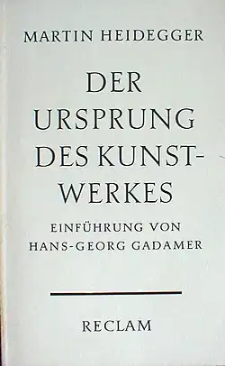 "The Origin of the Work of Art" (German: Der Ursprung des Kunstwerkes) is an essay by the German philosopher Martin Heidegger. Heidegger drafted the text between 1935 and 1937, reworking it for publication in 1950 and again in 1960. Heidegger based his essay on a series of lectures he had previously delivered in Zurich and Frankfurt during the 1930s, first on the essence of the work of art and then on the question of the meaning of a "thing", marking the philosopher's first lectures on the notion of art.