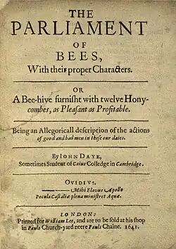 The Parliament of Bees is the best-known of the works of the Elizabethan and Jacobean dramatist John Day. It was probably written some time between 1608 and 1616, but not published until 1641.
