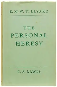 The Personal Heresy is a series of articles, three each by C. S. Lewis and E. M. W. (Eustace Mandeville Wetenhall) Tillyard, first published on 27 April 1939 by Oxford University Press and later reprinted, also by Oxford University Press, in 1965. The book has been reprinted in 2008 by Concordia University Press with an Introduction by Lewis scholar Bruce L. Edwards and a new Preface by the editor, Joel D. Heck. The central issue of the essays is whether a piece of imaginative writing, particularly poetry, is primarily a reflection of the author's personality (Tillyard's position) or is about something external to the author (Lewis's position). The two positions may be summarized briefly as the subjective position (Tillyard) and the objective position (Lewis). In general, Lewis attempts to keep poetry within the reach of the common person, while Tillyard thinks of the poet as a person who is "a cut above the common person."