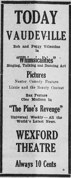 ![]() A newspaper advertisement for several films, including The Pine's Revenge | |
