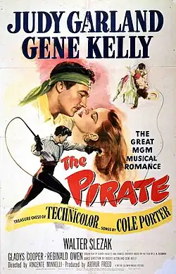 The Pirate is a 1948 American musical film produced by Metro-Goldwyn-Mayer. It stars Judy Garland and Gene Kelly with costars Walter Slezak, Gladys Cooper, Reginald Owen, The Nicholas Brothers, and George Zucco, with music by Cole Porter.
