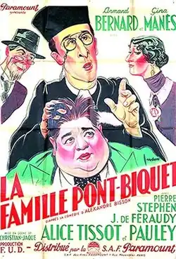 The Pont-Biquet Family (French: La famille Pont-Biquet) is a 1935 French comedy film directed by Christian-Jaque and starring Gina Manès, Armand Bernard and Paul Pauley.[1] It is based on the 1897 play of the same title by Alexandre Bisson.[2] The film's sets were designed by the art directors Henri Ménessier and René Renoux.
