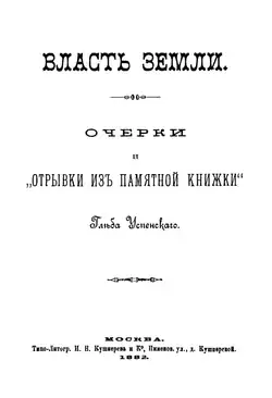 The Power of the Land (Russian: Власть земли, romanizedVlast zemli) is a collection of sketches by Gleb Uspensky, first published in Otechestvennye zapiski, Nos. 1-3, 1882. Followed by heated discussion in the Russian press, it was praised by liberals and panned by conservatives. In retrospect the book is regarded as Uspensky's major work.[1]