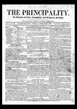 The Principality (established in 1847 by David Tudor Evans) was a weekly English language newspaper that was distributed throughout South Wales in the United Kingdom.