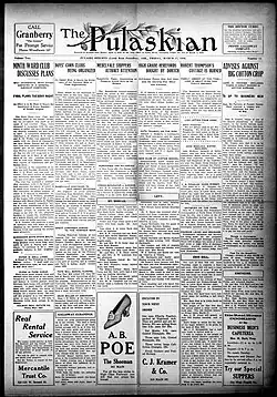 ![]() Front page of the Pulaskian weekly newspaper from March 17, 1916. | |