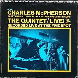The Quintet/Live! is a live album led by saxophonist Charles McPherson recorded in 1966 at the Five Spot Café and released on the Prestige label.[1][2] The album was released as an expanded CD with bonus tracks in 1995 as Live at the Five Spot.