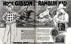 The Ramblin' Kid is a 1923 American silent Western film directed by Edward Sedgwick and featuring Hoot Gibson and Laura La Plante.[1] This may be a lost film.[1] It was based on the novel The Ramblin' Kid by Earl Wayland Bowman. The novel would later be filmed as a talkie in The Long Long Trail (1929) which also starred Gibson.