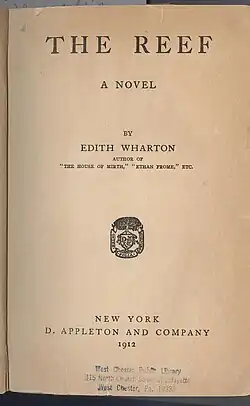 The Reef is a 1912 novel by American writer Edith Wharton. It was published by D. Appleton & Company. It concerns a romance between a widow and her former lover. The novel takes place in Paris and rural France, but primarily features American characters. While writing the novel, Edith Wharton visited England, Sicily, and Germany, among other locations.[1] In a letter to Bernard Berenson in November 1912, Wharton expressed regret regarding her novel, calling it a “poor miserable lifeless lump”. She wrote, “Anyhow, remember it’s not me, though I thought it was when I was writing it—& that next time I’m going to do something worthwhile!!”[1]