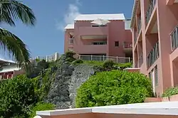 Situated on limestone cliffs overlooking pink sand in the southeast of Bermuda, the cabana-style limestone walled buildings and cottages are noted for their distinct pink and white color.